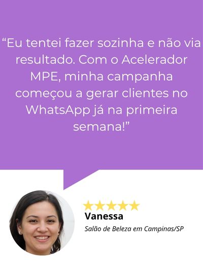 O Acelerador MPE foi criado para você que quer parar de perder tempo e começar a atrair clientes de verdade com uma campanha profissional feita do zero, pronta para rodar e vender.